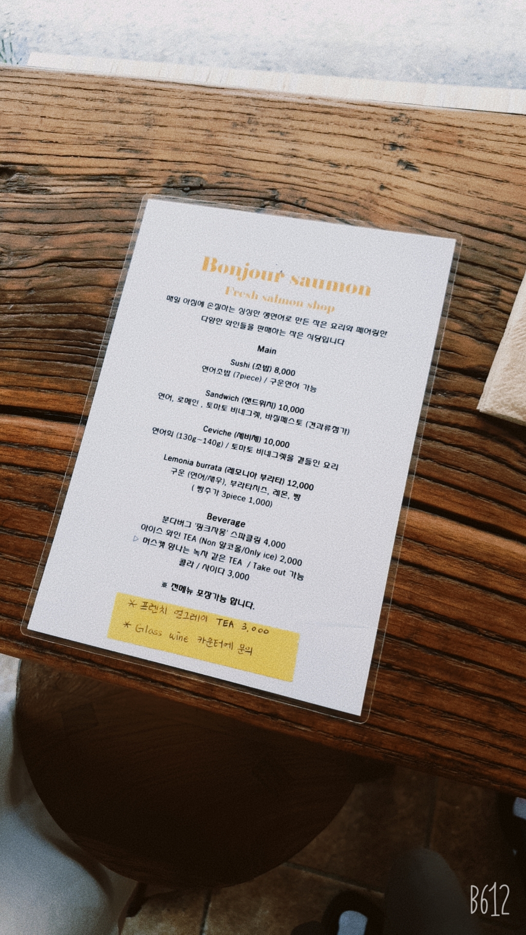 양이 살짝 부족해서 샌드위치를 주문할까하다가 세비체라는 새로운 메뉴에 도전했어요!